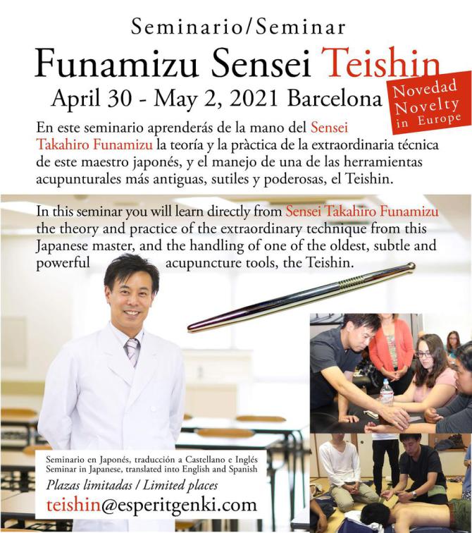 El maestro Takahiro Funamizu, lleva usando y difundiendo su técnica de Teishin Sazanami durante 20 años. Funamizu Sensei es uno de los líderes de la nueva ola de maestros acupuntores, siendo fundamental en la reactivación del uso del Teishin, poderosa y antigua herramienta acupuntural no insertiva. En su práctica clínica, centra su uso en el tratamiento psicológico de ansiedad y depresión, el tratamiento del estrés y el trauma desde un punto de vista integrativo junto con médicos, psicólogos y dietistas.